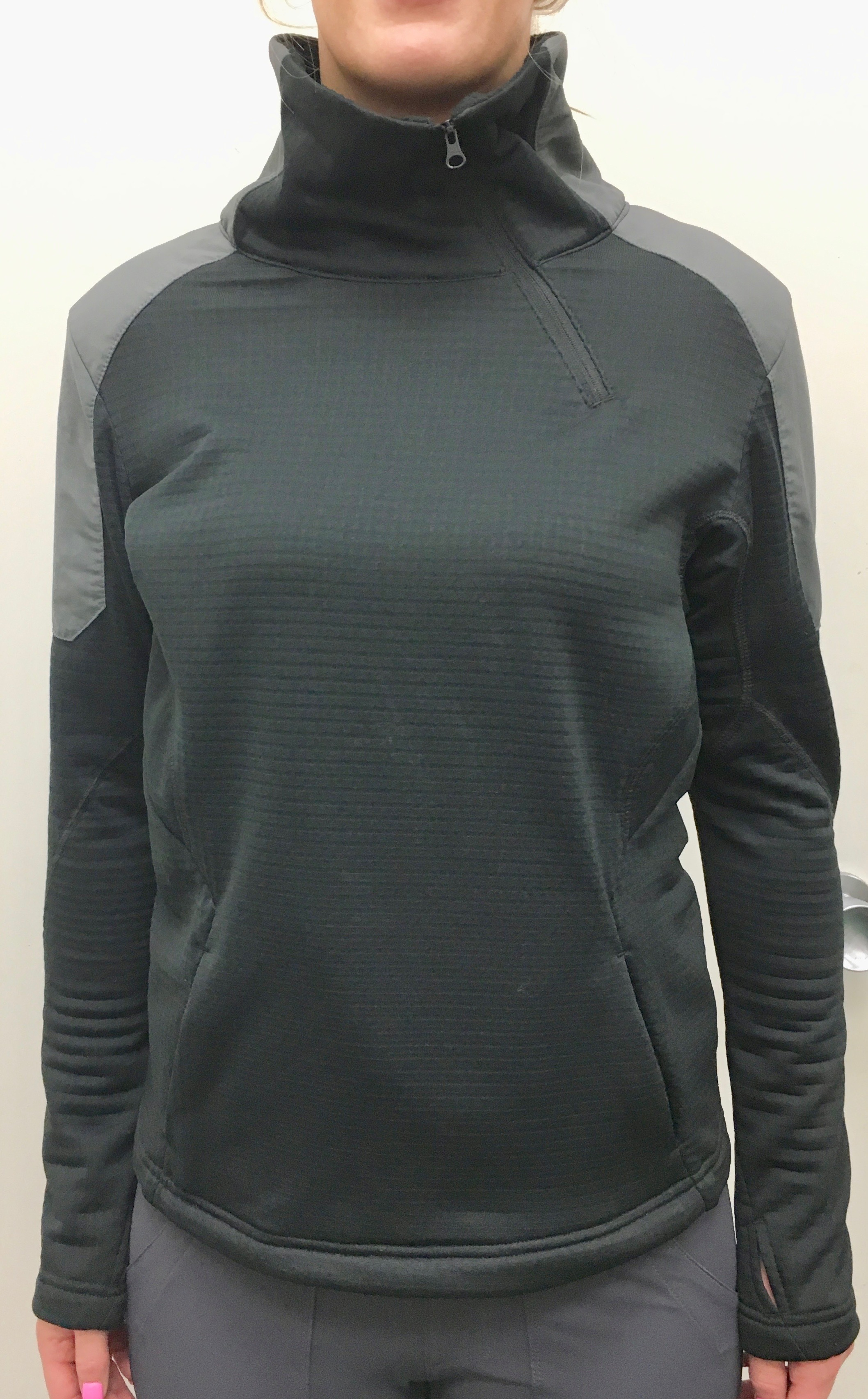 Was very excited to design a piece out of the Polartec’s Powergrid. The technical performs of this fabric is awesome. The goal was to design a piece that had more street appeal than more traditional 1/2 zip silhouettes you see on the street. On seam hand pocket, asymmetric zipper, funnel collar, nylon overlays to help with back pack abrasion high-lo hem.